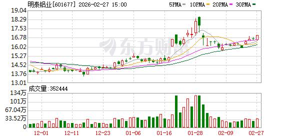 证券日报网讯 2月27日,明泰铝业在互动平台回答投资者提问时表示,公司作为再生铝龙头企业,已构建起“原料回收-熔炼再生-精深加工”的全产业链闭环,相较原铝可节省95%能源消耗,未来将持续享受绿色溢价!随着公司高端化项目鸿晟新材“汽车、绿色能源用铝产业园”及义瑞新材“年产72万吨铝基新材料智能制造项目”的陆续投产,资本开支减少,公司已承诺提升现金分红比例,促进估值回归合理水平。
